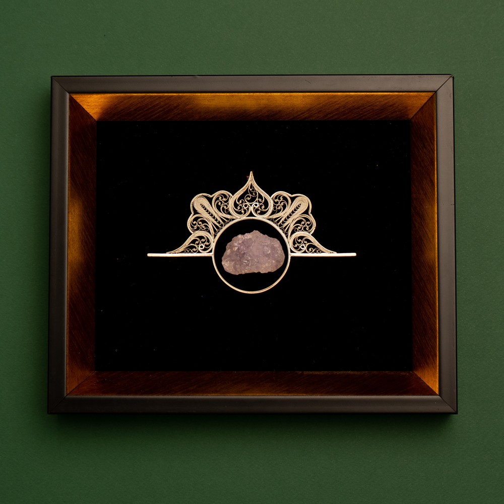 سنگ آمیتیست بهکاررفته در این تابلو، علاوه بر زیبایی خاصش، خواص معنوی و آرامشبخش دارد و میتواند به فضایی که در آن قرار دارد، احساس آرامش و دلگرمی ببخشد.