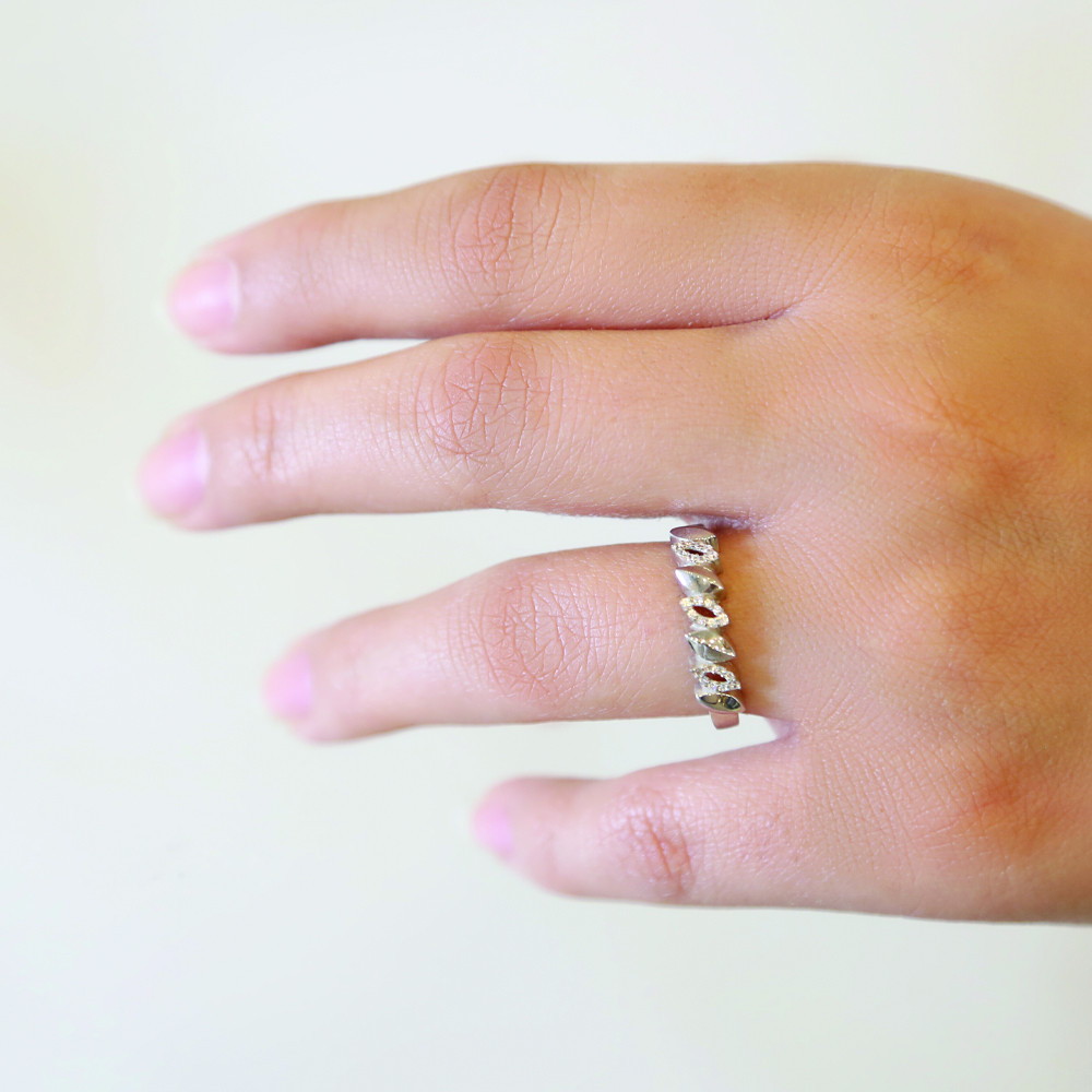 شاهکاری از هنر جواهرسازی است که با الهام از زیبایی طبیعت و برگهای ظریف طراحی شده است. این انگشتر با خطوط نرم و فرم برگمانند خود، حس طراوت، زندگی و شکوهی طبیعی را به دستان شما هدیه میدهد. طراحی خاص و چشمنواز آن باعث میشود هر بار که به دستتان نگاه میکنید، درخشش و اصالت طلای ۱۸ عیار را در کنار زیبایی برگهای طبیعت احساس کنید.