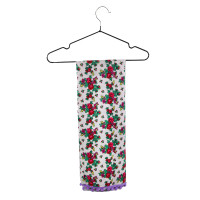 این شال سفید با گلهای قرمز پرطراوت، برگهای سبز سرزنده و یراق منگولههای یاسی، یک ترکیب ظریف و هنرمندانه از رنگهاییست که با دقت انتخاب شدهاند تا حس آرامش و انرژی را توأمان منتقل کنند.