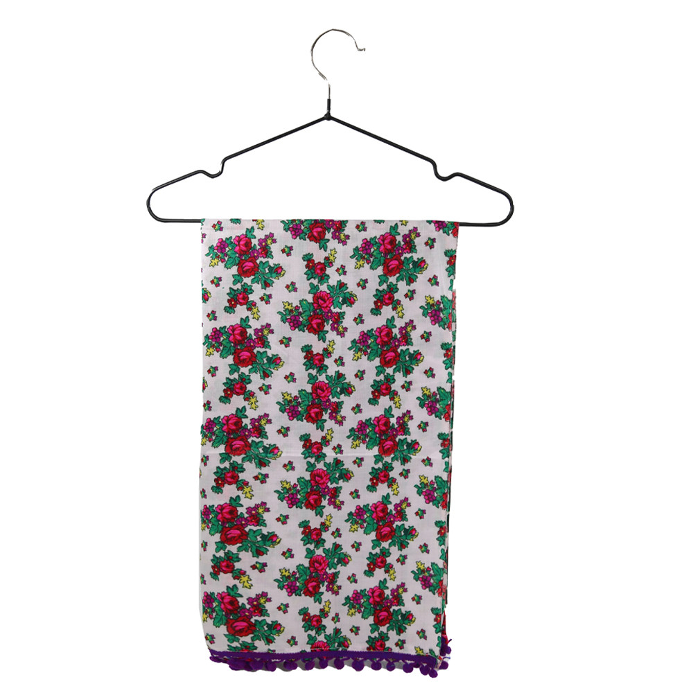 اگر بهدنبال یک شال خاص با ترکیب رنگی متفاوت و طراحی چشمگیر هستید، شال سفید با گلهای قرمز و منگولههای بنفش انتخابی بینظیر برای شماست. این شال با پارچه نخی سبک و لطیف طراحی شده که مناسب فصلهای گرم سال مانند بهار و تابستان است.