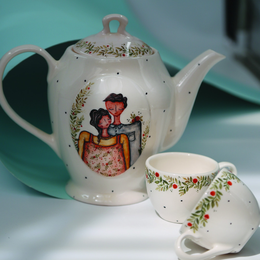 ست قوری و فنجان سرامیکی کد 02