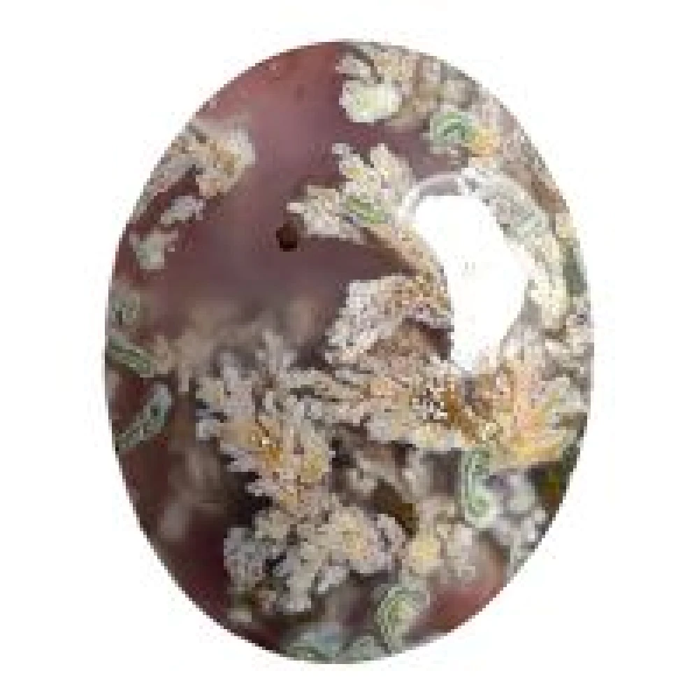 1. طرحهای طبیعی: طرحهای شجر در این نوع عقیق مانند شاخهها، درختان یا شکوفهها دیده میشود که به سنگ جلوهای از مناظر بهاری و طبیعت میبخشد. شکوفههای صورتی و آبی در این طرحها حس تازگی و زیبایی طبیعت را تداعی میکنند.