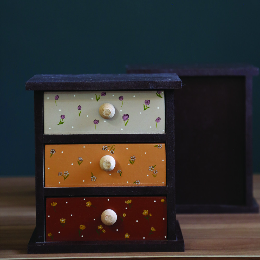 سه کشوی روان و خوشساخت آن بهترین جا برای اکسسوریها، کشموها، زیورآلات یا وسایل کوچک روزمره هستند — دیگر هیچ چیز گم نمیشود!