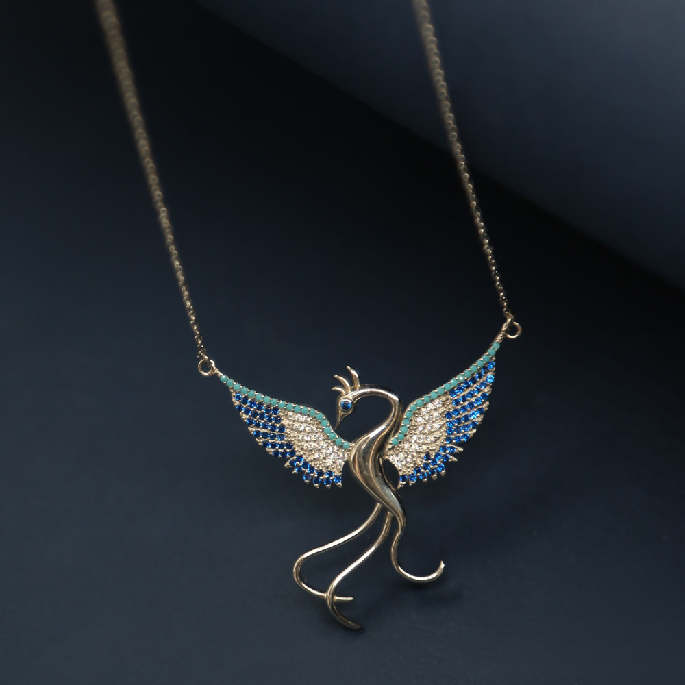 این گردنبند خاص از نقره اصل و باکیفیت ساخته شده و با ترکیب رنگی خیرهکنندهی نقرهای و آبی در دو طیف تیره و روشن جلوهای منحصربهفرد پیدا کرده است. بازی رنگها در کنار طرح ظریف ققنوس، آن را به انتخابی عالی برای دوستداران زیورآلات خاص و متفاوت تبدیل میکند.