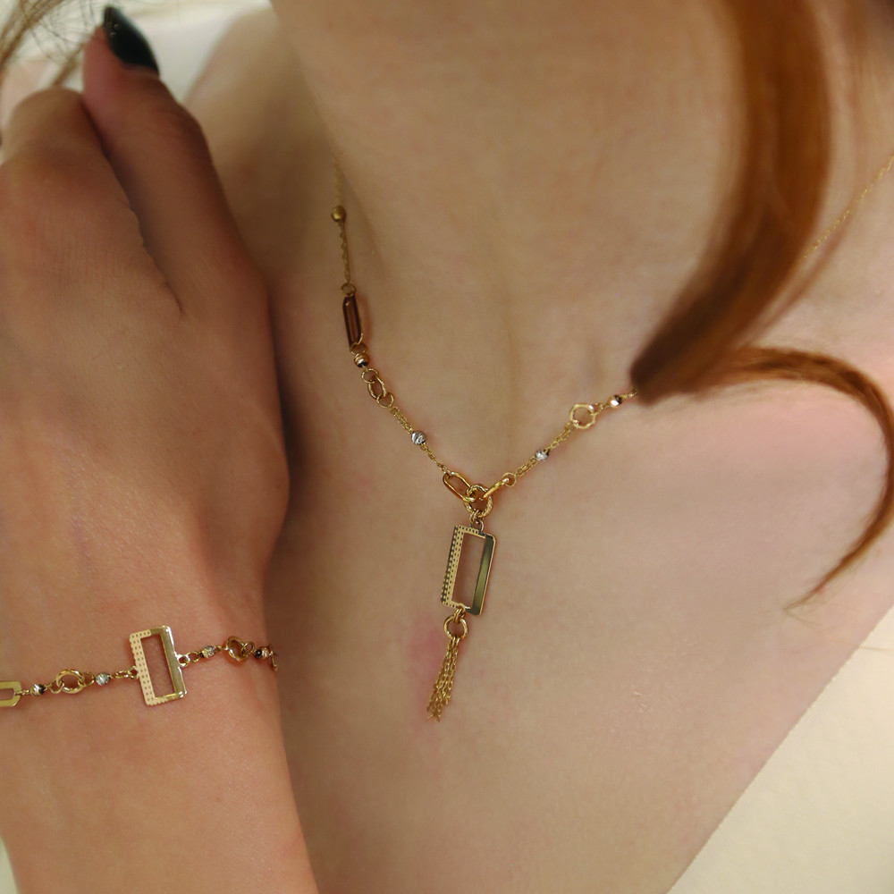 نیم ست طلای کریستال برف را با گوشواره یا انگشتر ست آن تکمیل کنید تا جلوهای بینظیر و خیرهکننده خلق کنید.
