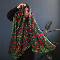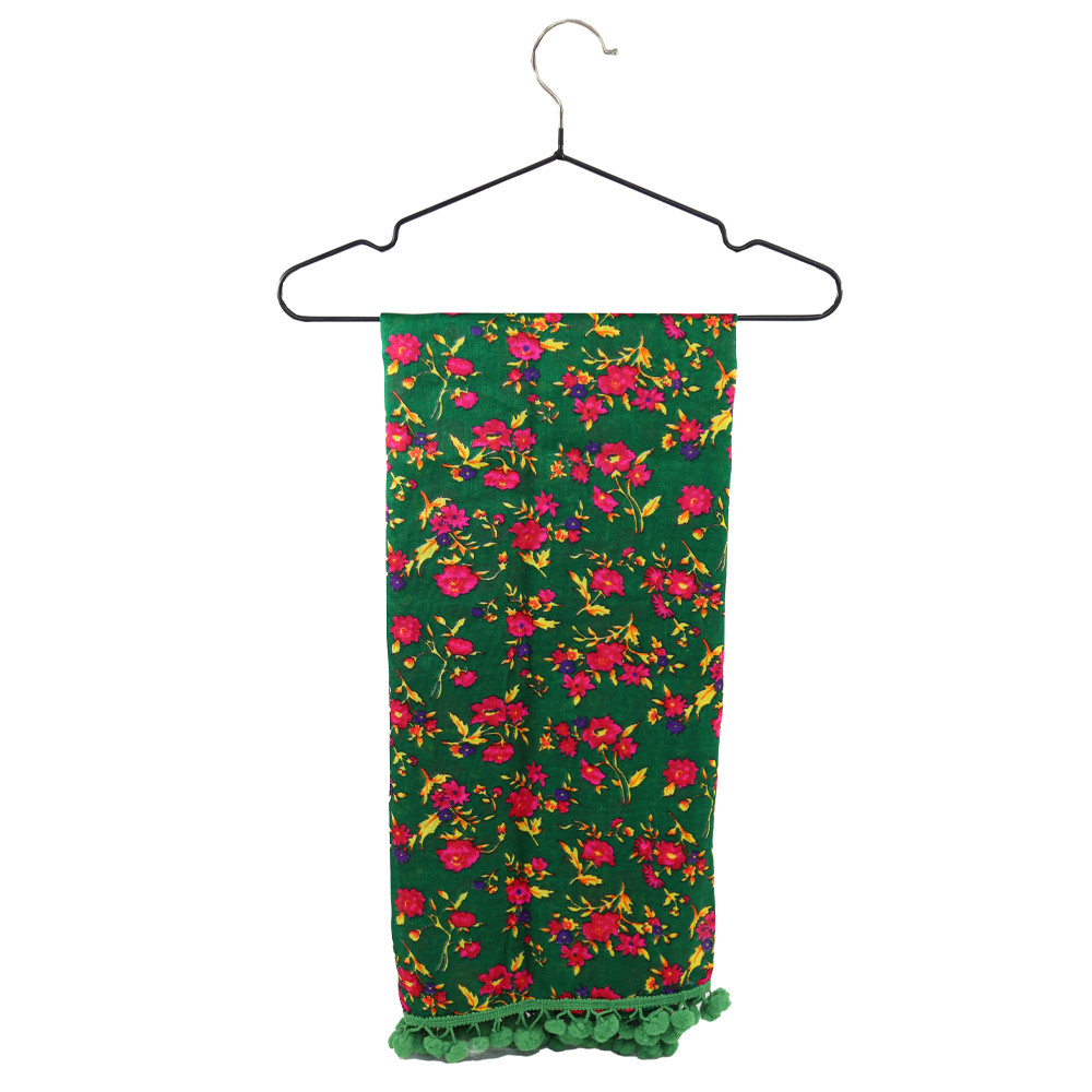 با معرفی شال سبز گلدار با گلهای صورتی، برگهای سبز و منگولههای سبز روشن
