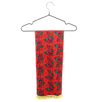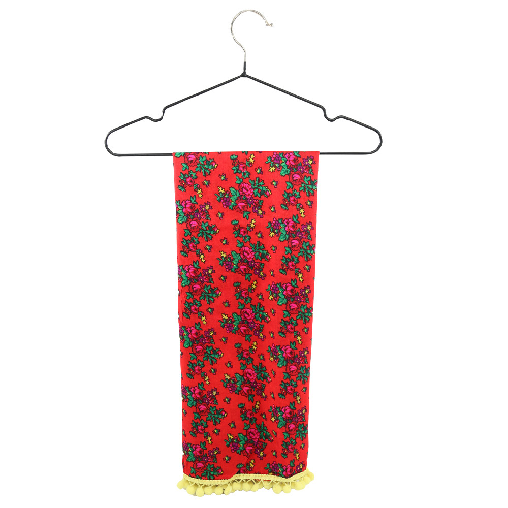 اگر بهدنبال یک شال متفاوت و خاص هستید که با اولین نگاه توجهها را به خود جلب کند، شال گلدار قرمز با گلهای قرمز و یراق منگوله زرد بهترین انتخاب شماست.