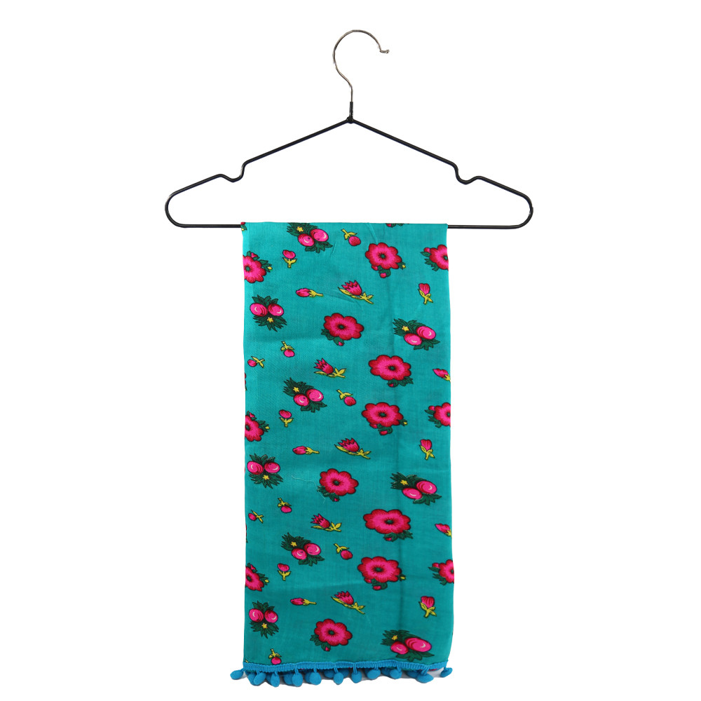 این شال آبی فیروزهای با گلهای صورتی و یراق منگولههای آبی، انتخابی خاص برای خانمهایی است که میخواهند به استایل خود رنگ و زندگی ببخشند. رنگ آبی فیروزهای، یادآور آرامش دریا و آسمان صاف است و با گلهای ظریف صورتی ترکیبی لطیف و زنانه ایجاد کرده است. منگولههای آبی براق در لبههای شال، جلوهای مدرن و جذاب به آن میبخشند که هر نگاه را به خود جلب میکند.