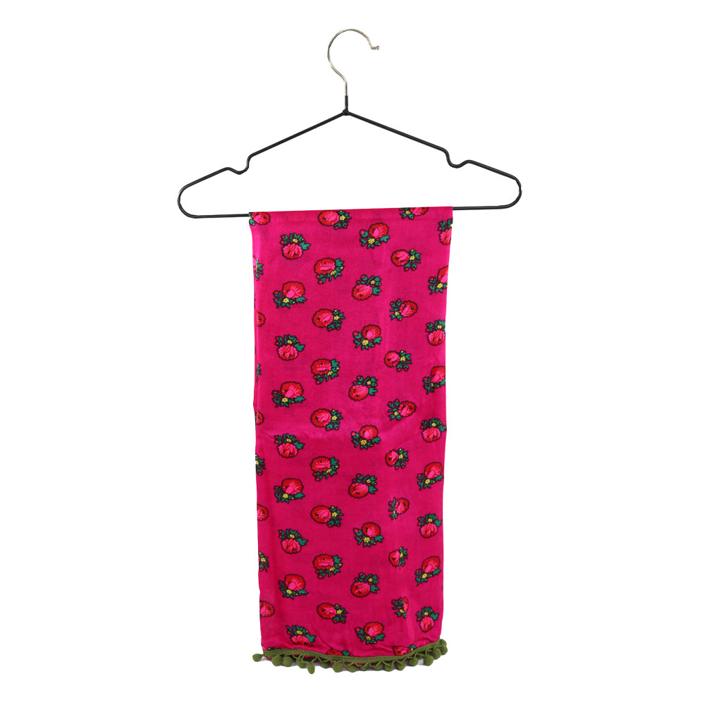 جلوهای خاص، لطیف و زنانه به استایل روزانهتان ببخشید. این شال با زمینه صورتی دلنشین و گلهایی با طیف رنگی همخوان، زیبایی و سادگی را همزمان در خود جای داده است. تزئین لبهها با یراق منگولهای به رنگ یشمی، تضادی هنرمندانه و متفاوت ایجاد کرده که به جذابیت این شال افزوده است.