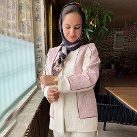 صورتی و سفید این کت، ظاهری شیک، زنانه و چشمنواز به آن بخشیده است. رنگها در کنار هم هارمونیای ملایم و آرامبخش ایجاد میکنند که هم برای استایل روزمره و هم برای موقعیتهای خاص مناسب است.